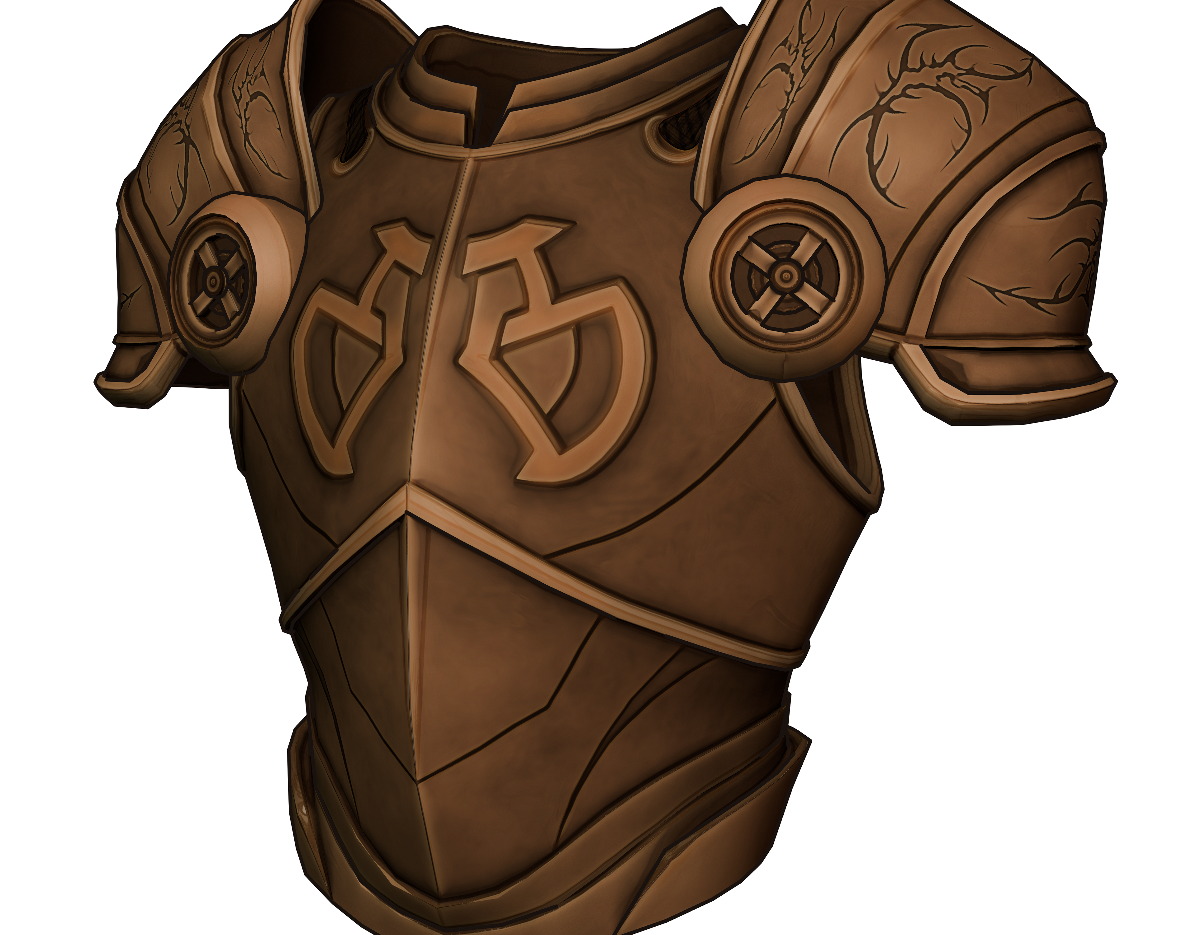 A stylized 3D armor model with clean, precise forms and a cell-shaded, comic-book look.