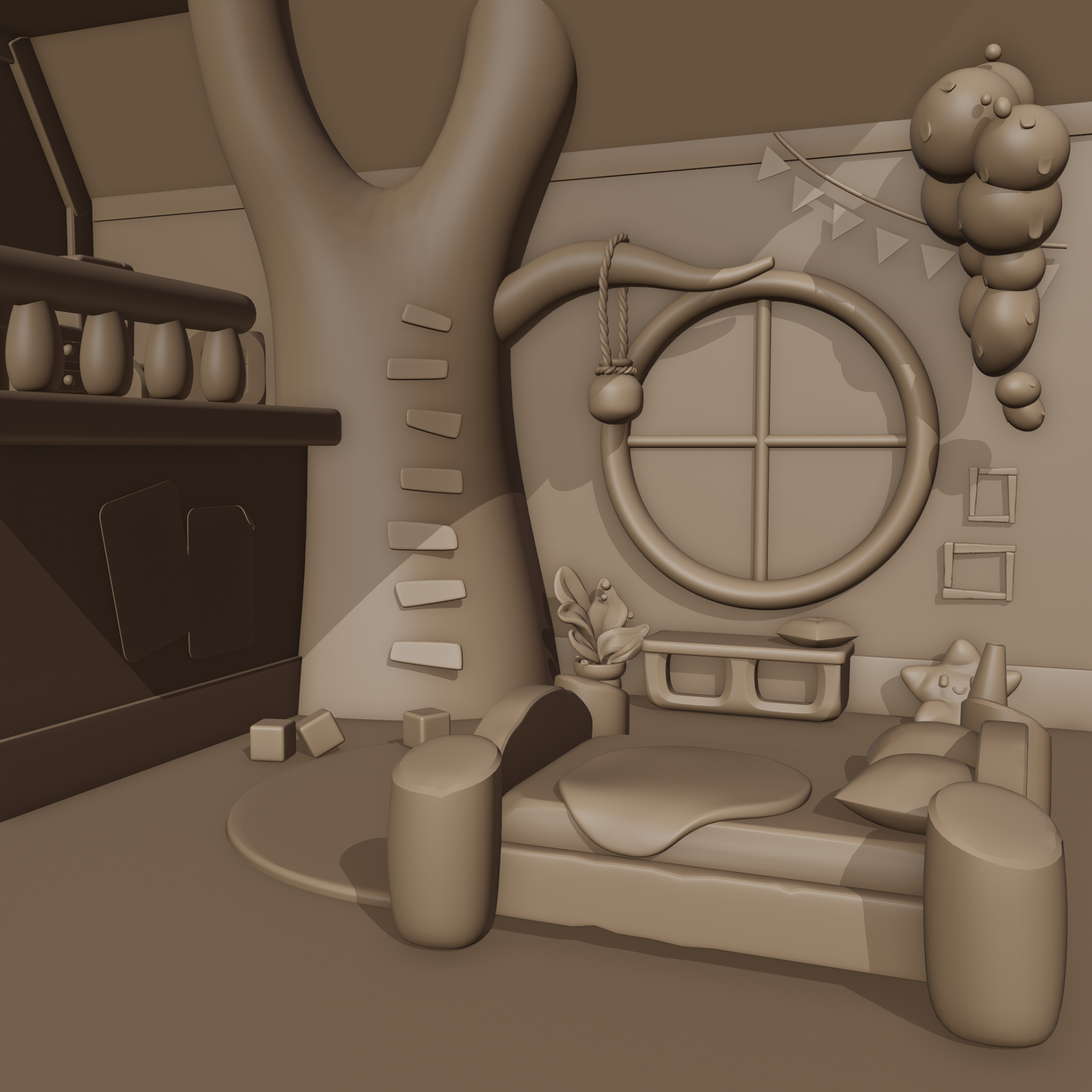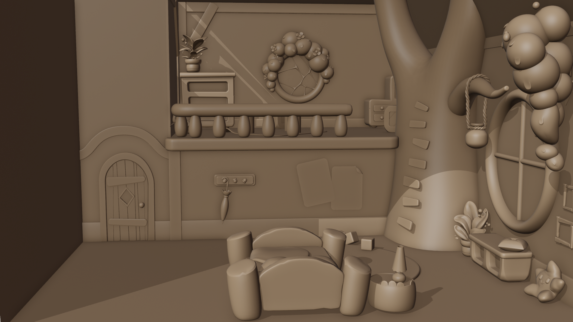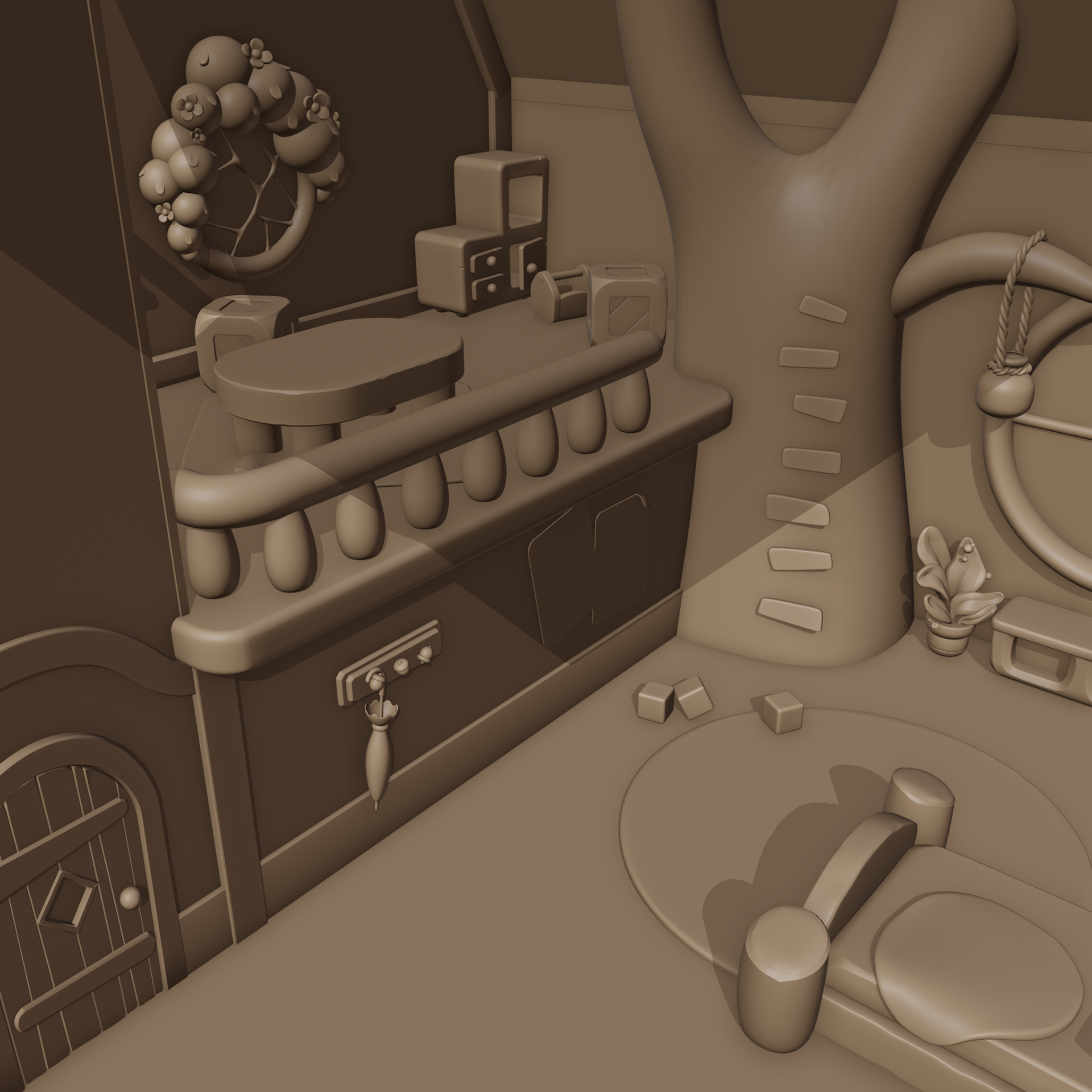 In this project I mainly focused on character and asset modeling for animation. The designs were provided by the art director, while my role was to bring them into 3D. Since the models were intended to look visually appealing in motion rather than being fully optimized for real-time use, their geometry and topology are clean but not low-poly. Texturing was not part of my responsibilities, except for one model - Mommy Bear - for which I created the textures shown above.