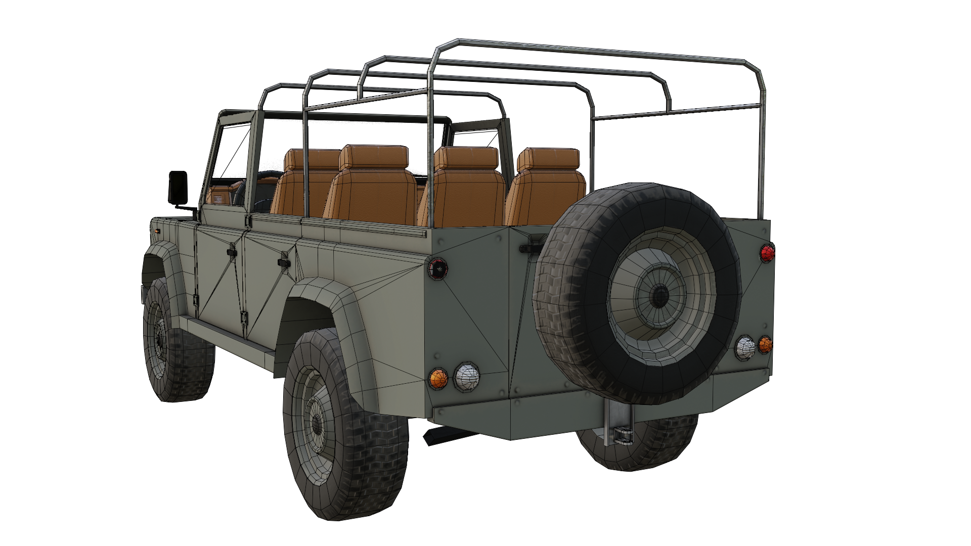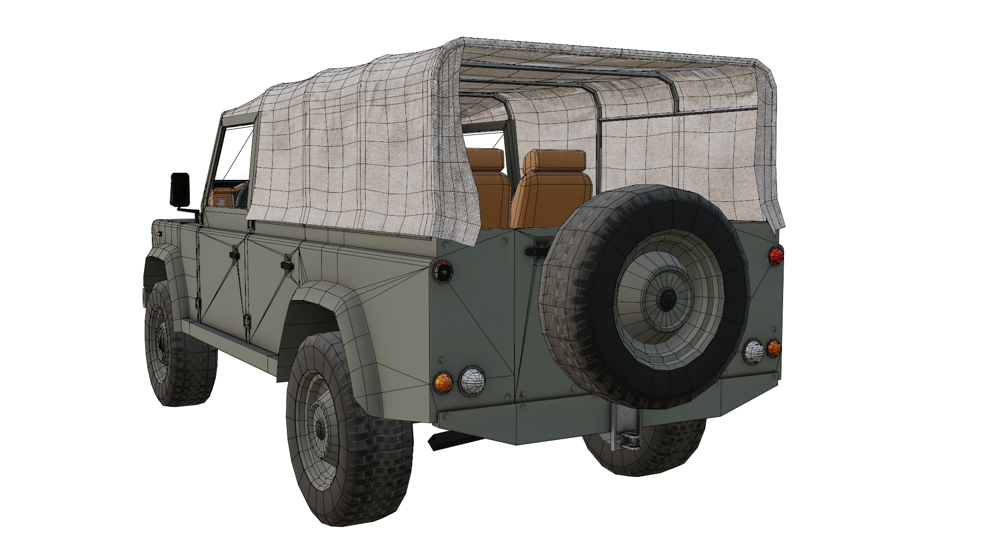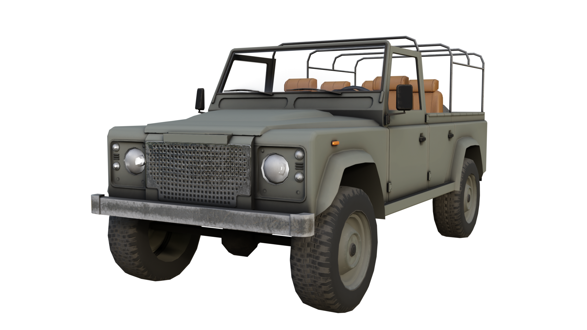 3D model of a classic Land Rover Defender, fully optimized for WebGL and designed for use as the player’s vehicle in the experience.