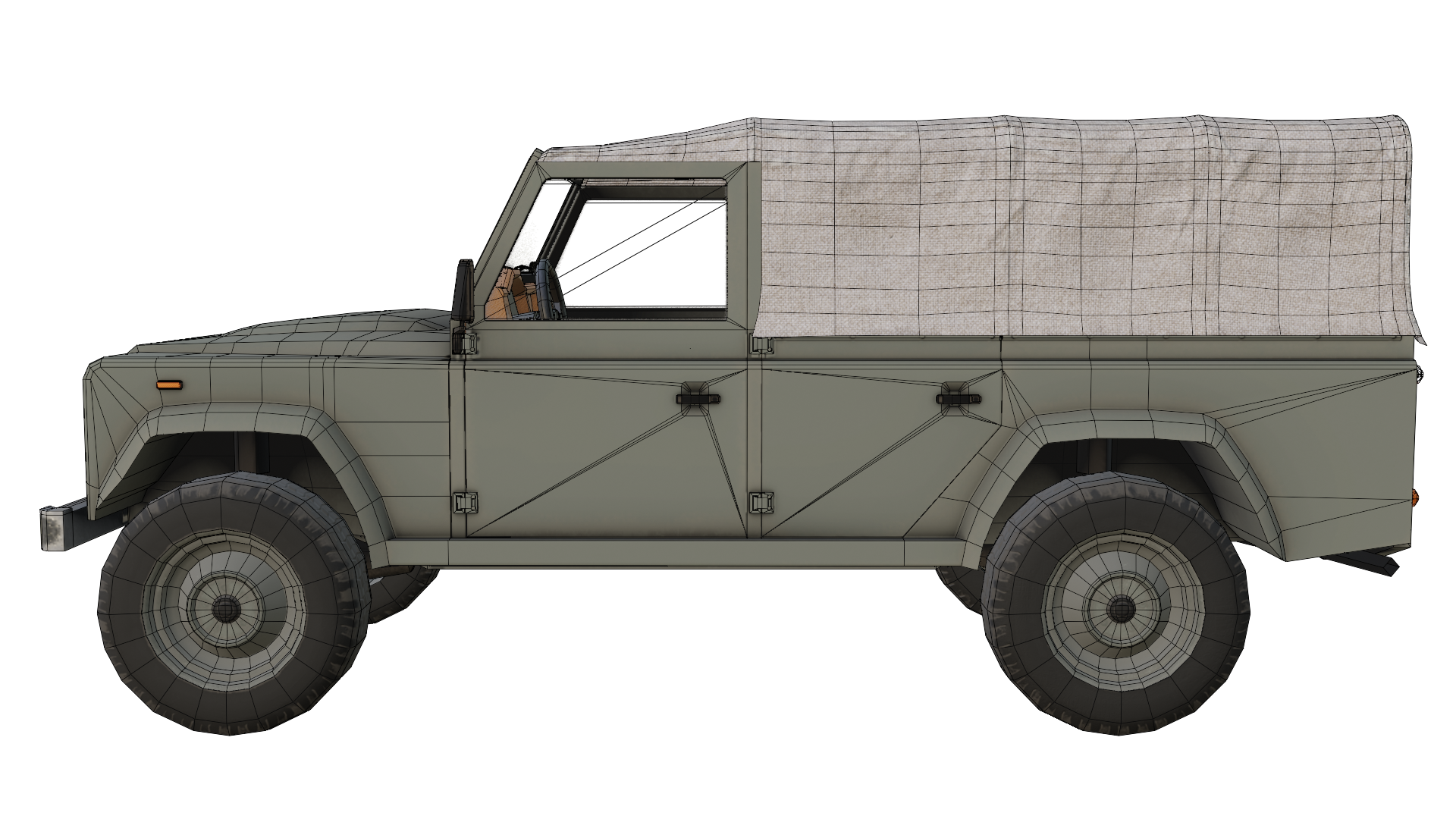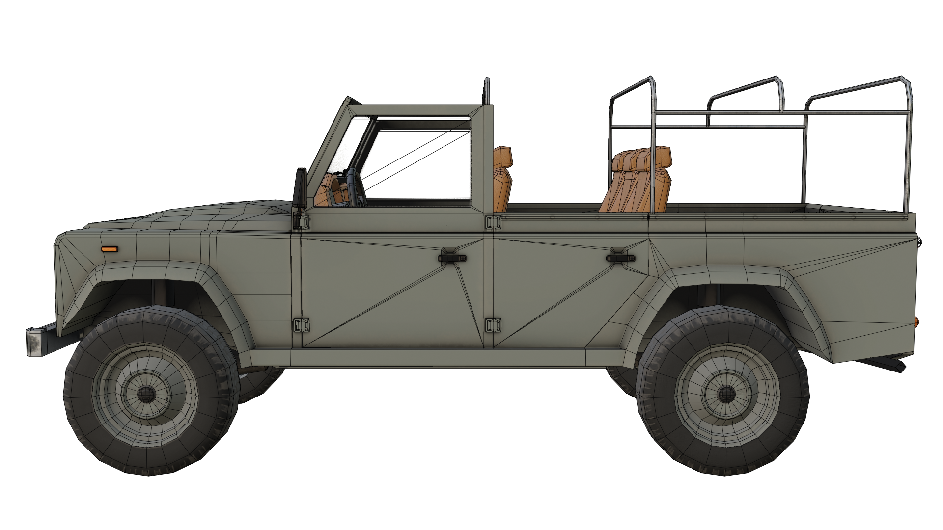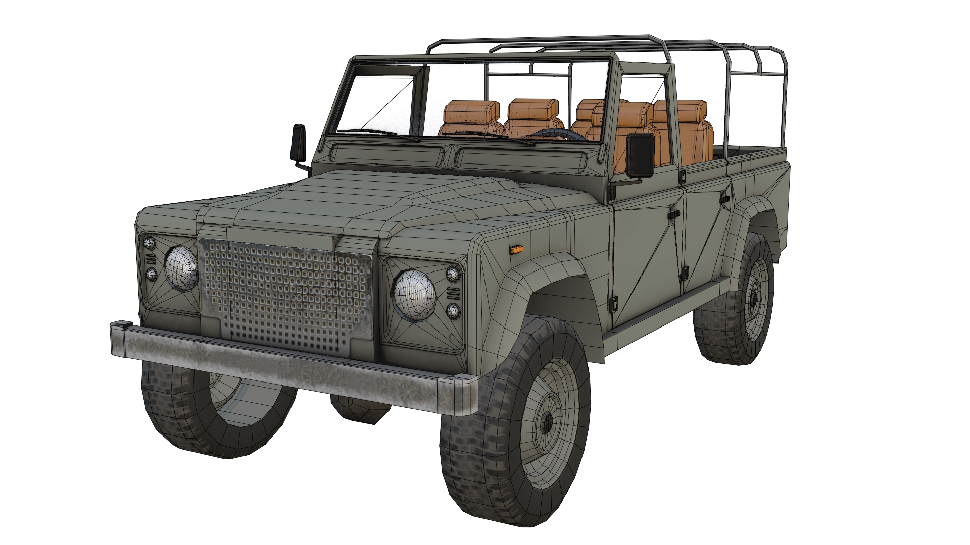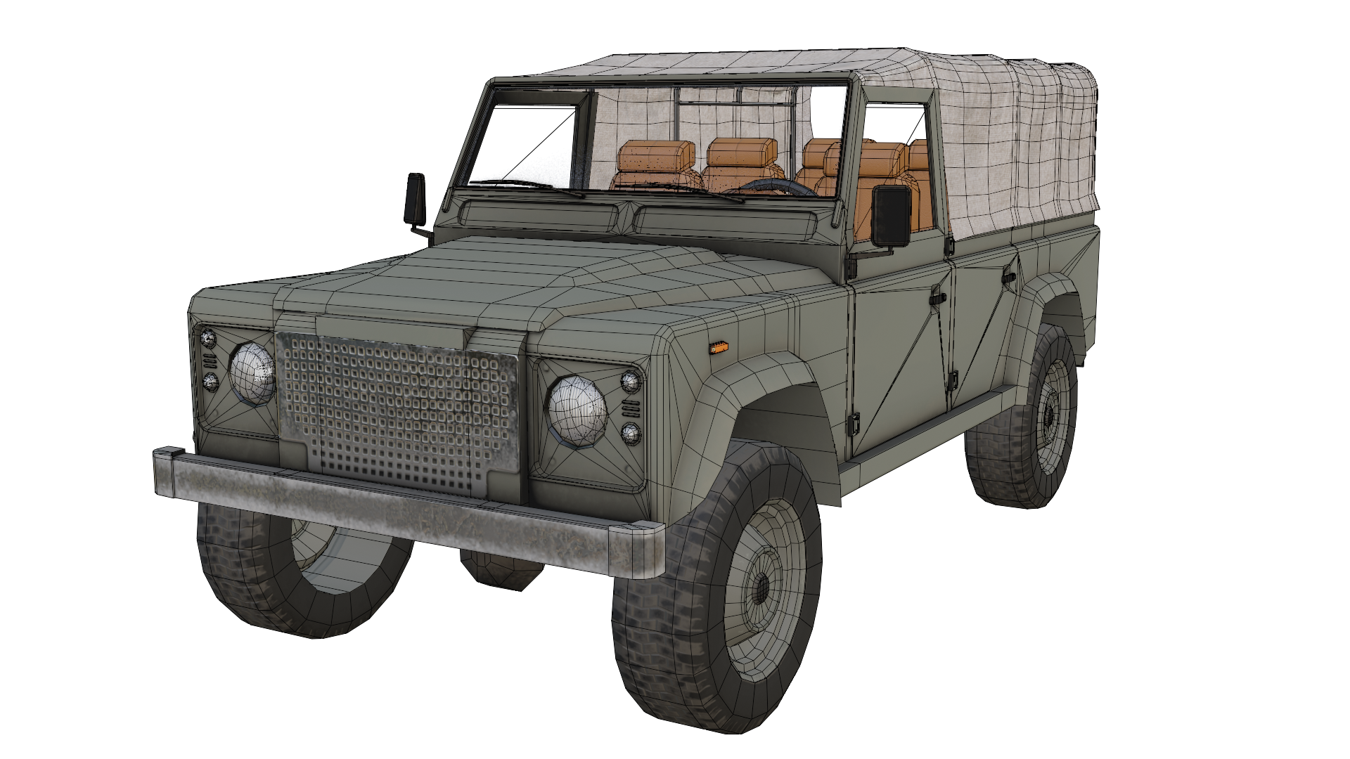 3D model of a classic Land Rover Defender, fully optimized for WebGL and designed for use as the player’s vehicle in the experience.